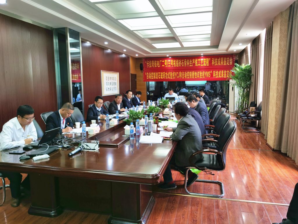 ? ? 2020年10月24日—25日,中國砂石協(xié)會組織專家對南昌礦機及其子公司江西南礦完成的兩個項目進行了科技成果鑒定。項目分別為“砂石骨料母巖加工屬性試驗機”項目和“缺水地區(qū)核電混凝土用硬質(zhì)高吸附性巖石加工砂石骨料成套技術(shù)及應(yīng)用”項目。